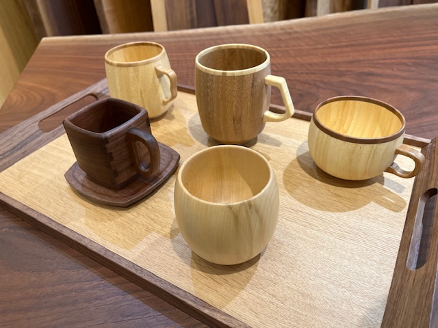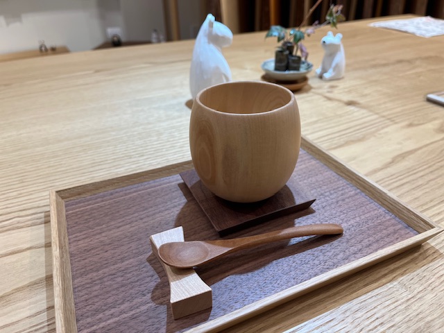 木のカップでホットドリンクを♪